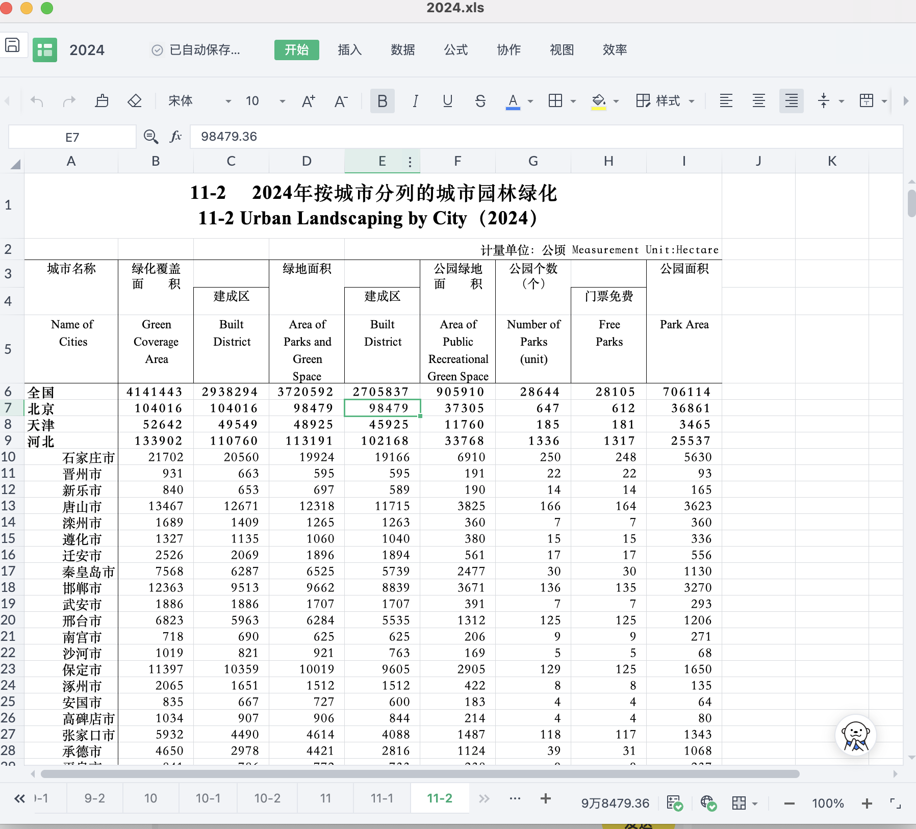 中国城市建设统计年鉴(1998-2024年)