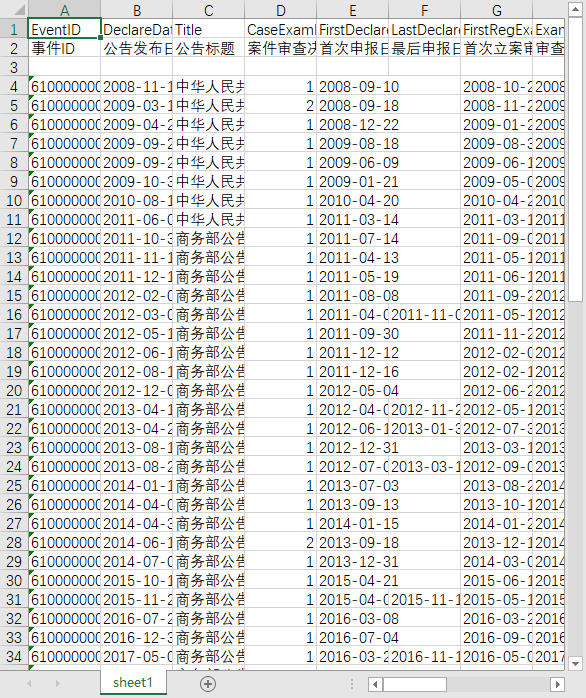 事件ID 公告发布日期 公告标题 案件审查决定 首次申报日期 最后申报日期 首次立案审查日期 审查结束日期 案件执法机构 案件基本情况 涉及方ID 涉及方名称 交易地位编码 交易标的类型 经营者集中方式 限制性条件 限制性条件提交日期 限制性条件期限