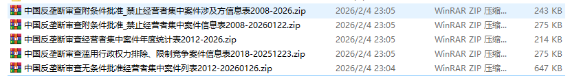 中国反垄断审查数据集2008-2026批准禁止经营者集中滥用行政权力排除限制竞争案件等.zip