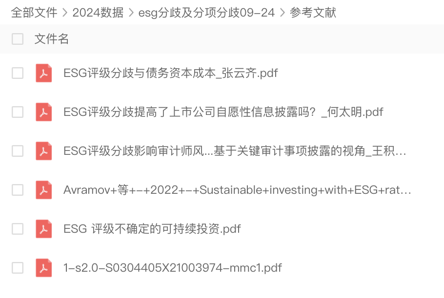 【2009-2024年】ESG评级分歧数据!八大方法+分项分歧,5万+观测值!