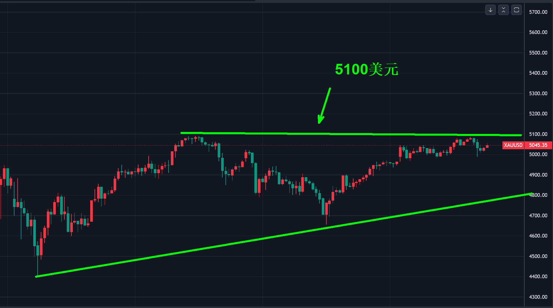 今天首先以4960-70美元的区域作为强支撑,回调后找位置多,关注5100美元突破情况,破位后回调还能再多,一旦向下破位4960-70美元反手看回落即可。
