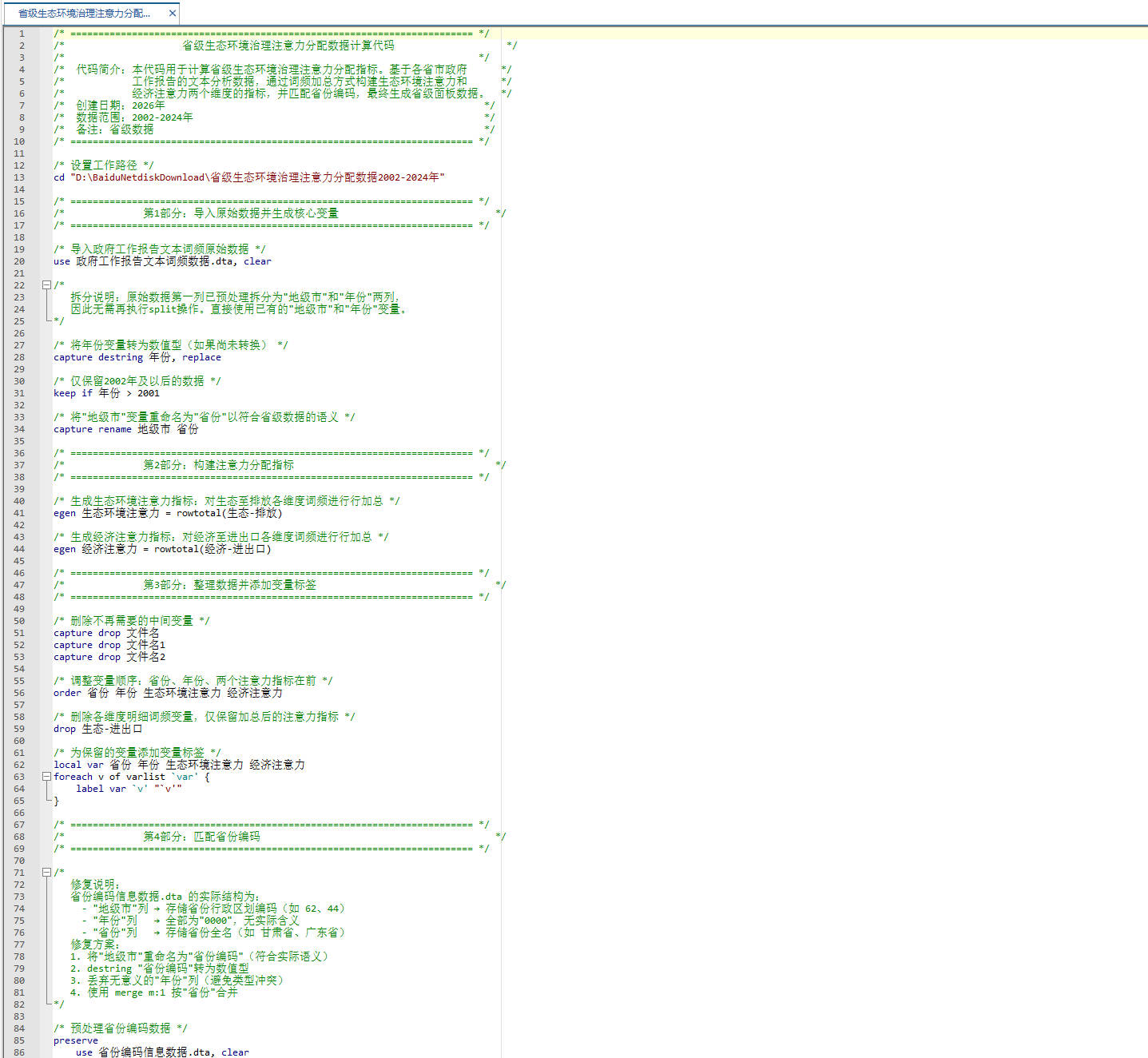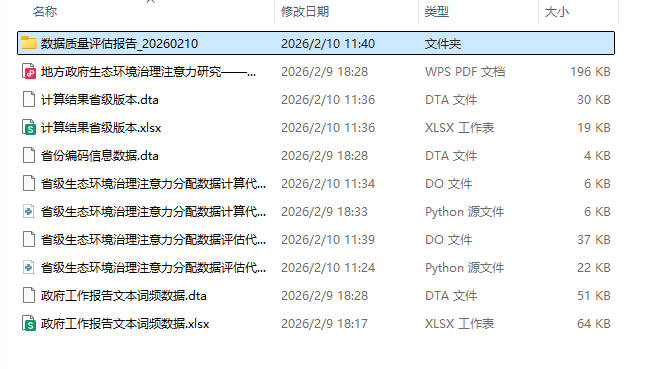 - 文件夹内附参考论文PDF:《地方政府生态环境治理注意力研究——基于30个省市政府工作报告(2006—2015)文本分析》