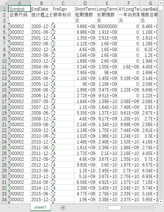 证券代码 统计截止日期 频率标识 短期借款 长期借款 一年内到期的长期借款 借款总额 其中:质押借款 其中:保证借款 其中:信用借款 其中:抵押借款 其中:票据贴现 其中:其他借款 资产负债率 信用借款比例 抵押借款比例 担保借款比例 逾期金额 展期金额 贷款偿还率
