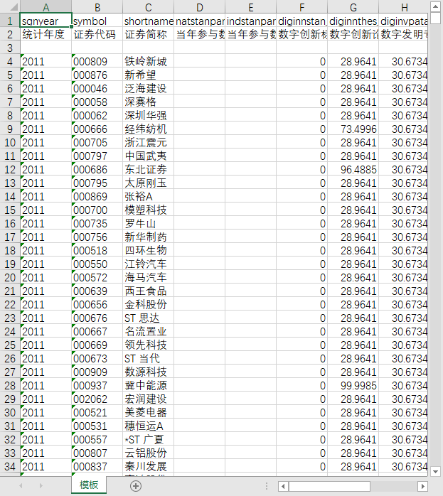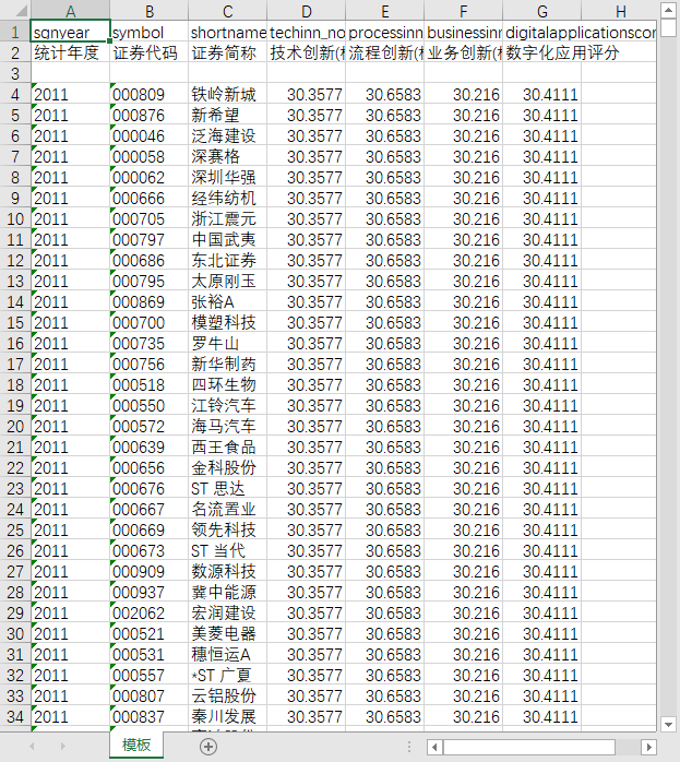 统计年度 证券代码 证券简称 技术创新(标准化) 流程创新(标准化) 业务创新(标准化) 数字化应用评分