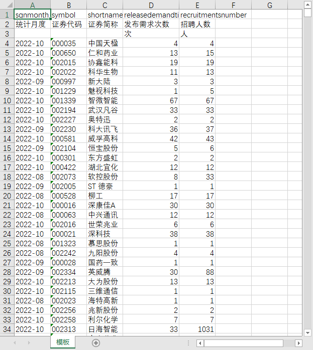 统计月度 证券代码 证券简称 发布需求次数 招聘人数