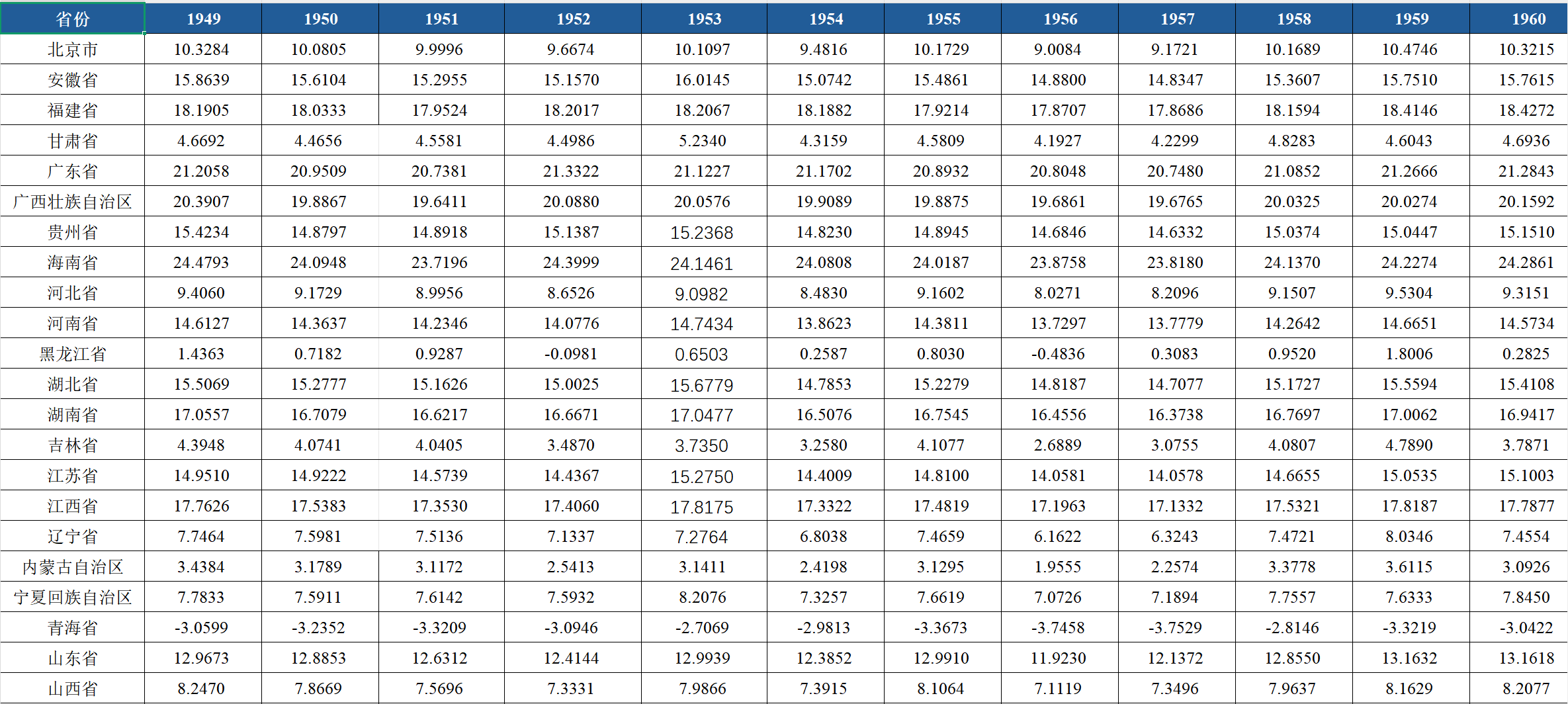 来源于气象统计资料,涵盖我国31个省份1949-2023年的年平均气温,为相关研究者提供数据参考