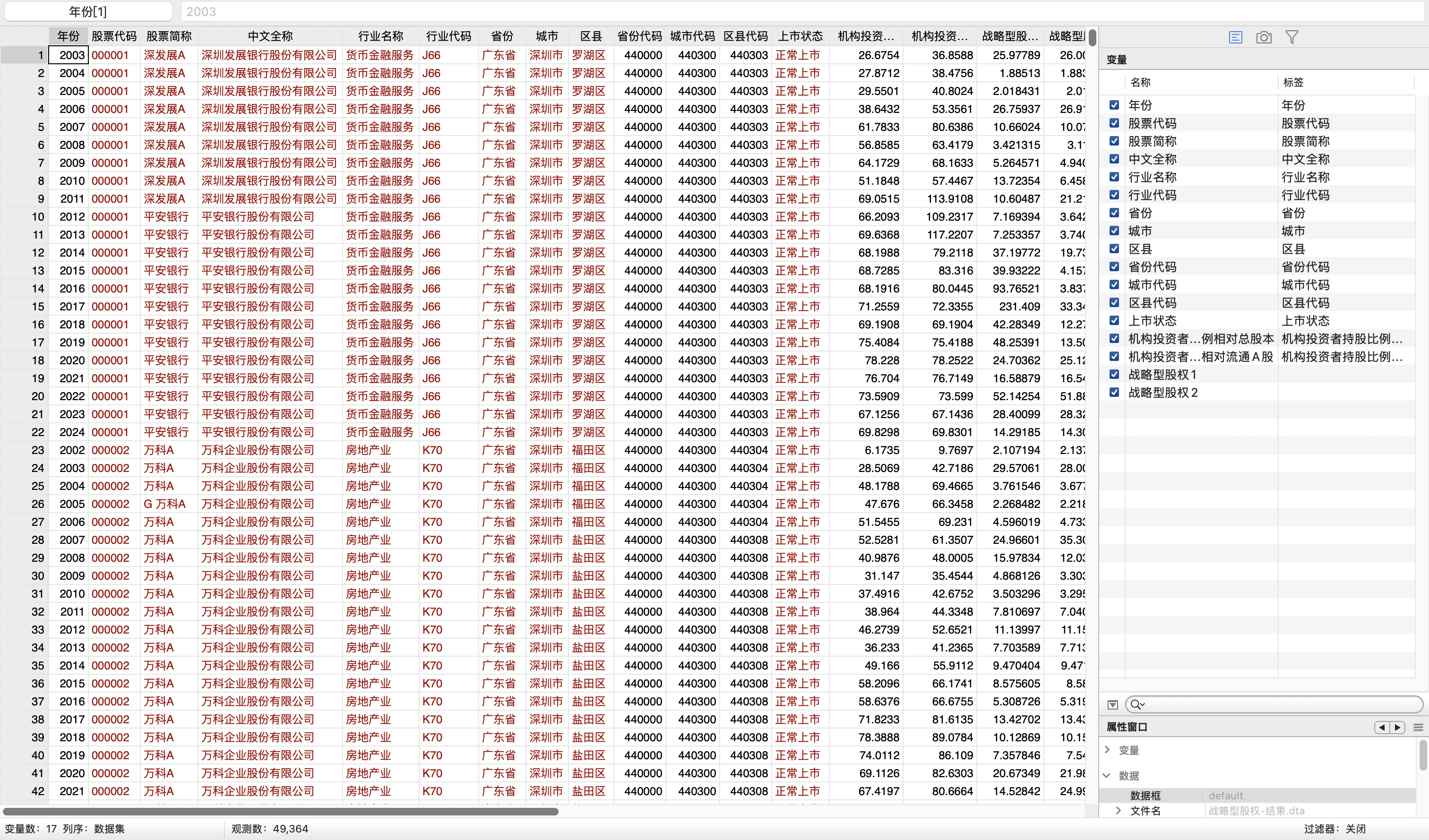 参考《科学决策》中吴旻佳等(2022)、《财会月刊》中李季鹏等(2025)的研究方法,分别采用关系型债权占比、战略型股权占比两种方式对上市公司企业耐心资本进行衡量关系型债权占比:长期负债(如银行长期贷款、应付债券)占总负债的比例,反映企业通过长期债务支持战略的能力;战略型股权:机构投资者持股比例与其过去 3 年持股比例标准差的比值,比值越高表示投资者稳定性越强