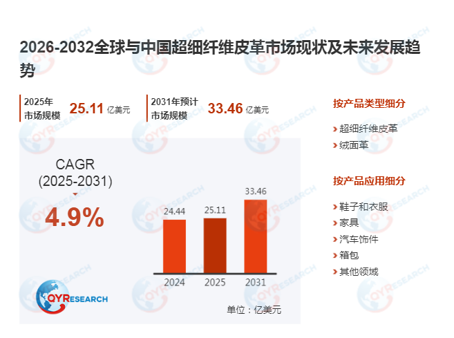 根据QYResearch最新调研报告显示,预计2032年全球超细纤维皮革市场规模将达到3493百万美元,未来几年年复合增长率CAGR为4.9%。