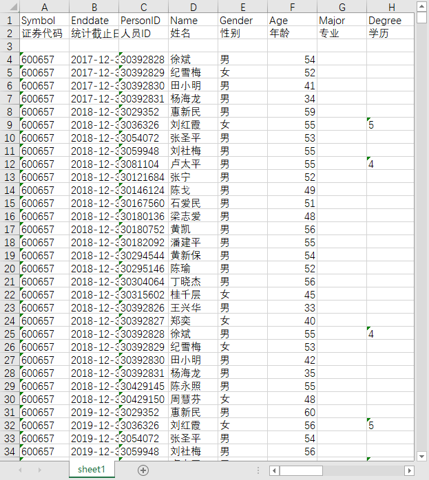 证券代码 统计截止日期 人员ID 姓名 性别 年龄 专业 学历 毕业院校 具体职务 任职开始日期 任职结束日期 是否领取薪酬 报告期报酬总额 其中:津贴 年末持股数 持股方式 海外背景 金融背景 个人简历