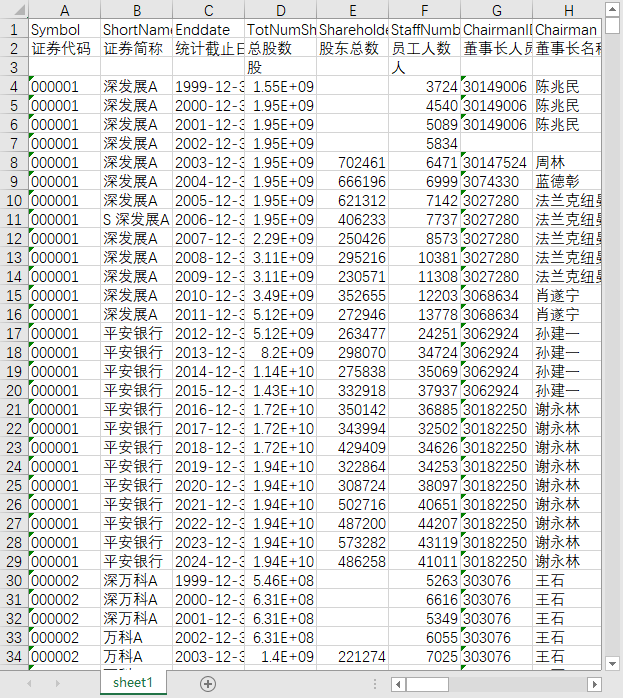 上市公司公司治理信息表1999-2025股东总数员工人数董事长总经理兼任情况持股比例四委设立个数