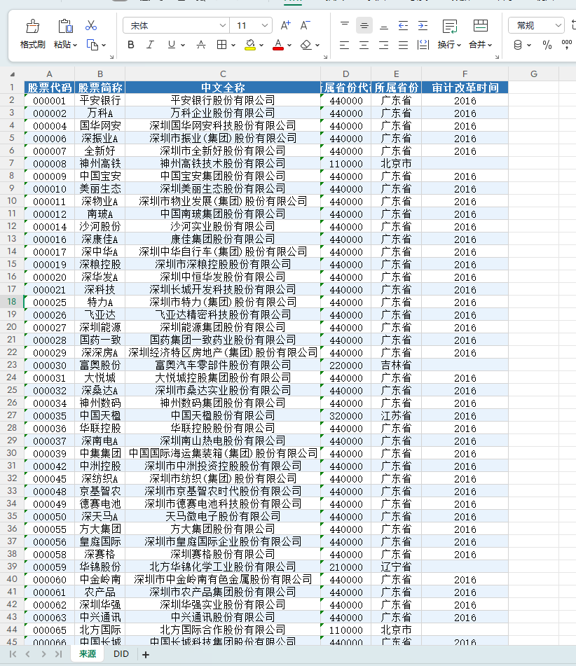 本数据参考贺佳等(2023)《政府审计独立性提升能否抑制地方国有企业过度负债?》的研究框架,构建政府独立审计DID变量,其具体步骤为:如果企业注册地位于省以下地方审计机关人财物管理改革的试点省份,则在改革之后的年份DID取1,否则取0。此外,参考论文中省以下地方审计机关人财物管理改革的相关政策文件是在2015年12月份发布的,而各省份发布相关配套文件并全面部署工作则主要集中在2016年7、8月份,加之考虑到政策时滞等因素的存在,因此将改革第二年(2016)及以后赋值为1。