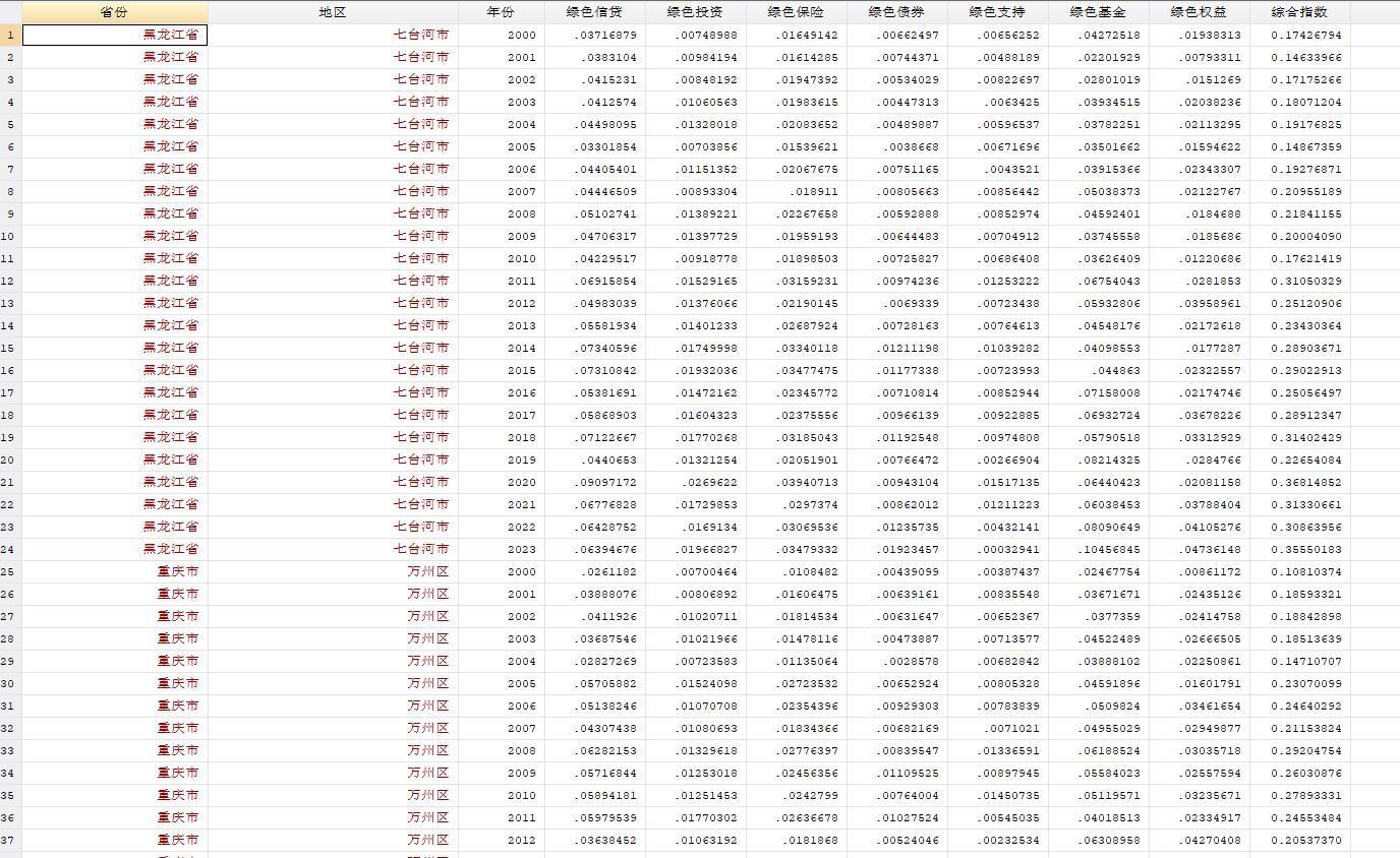 1.绿色信贷——环保项目信贷占比——该省环保项目信贷总额/全省信贷总额