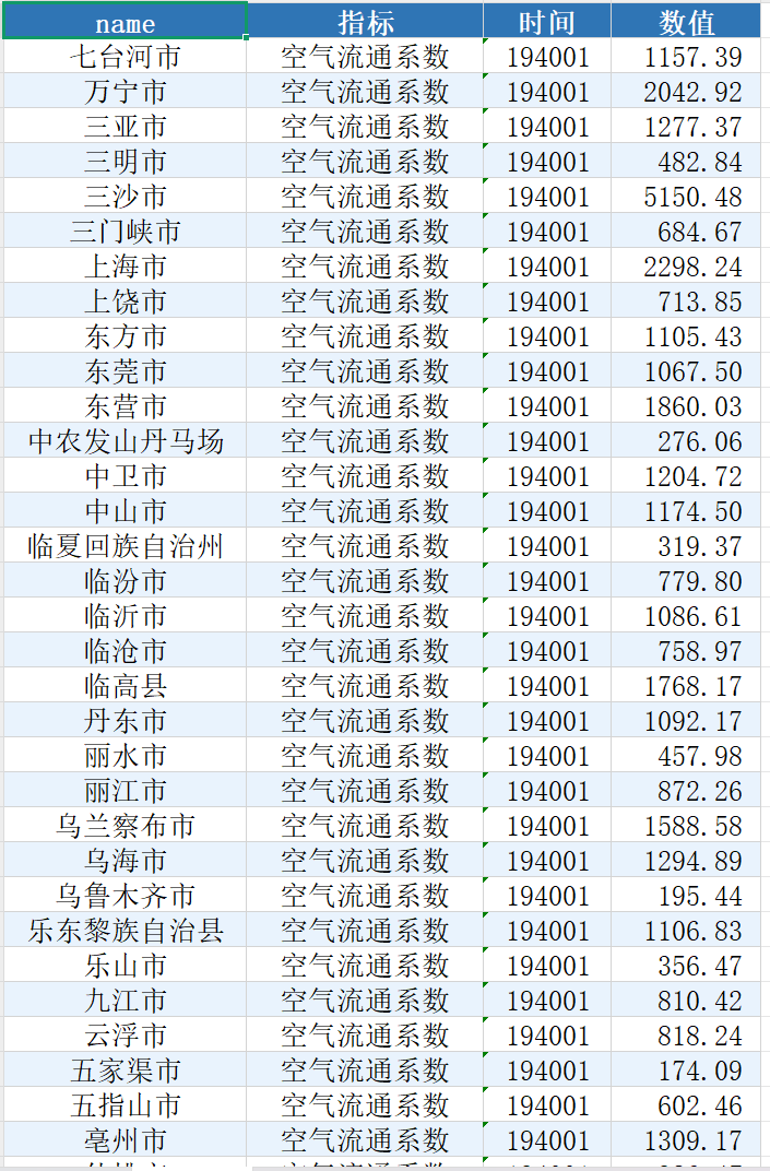 数据名称:省市县-空气流通系数数据