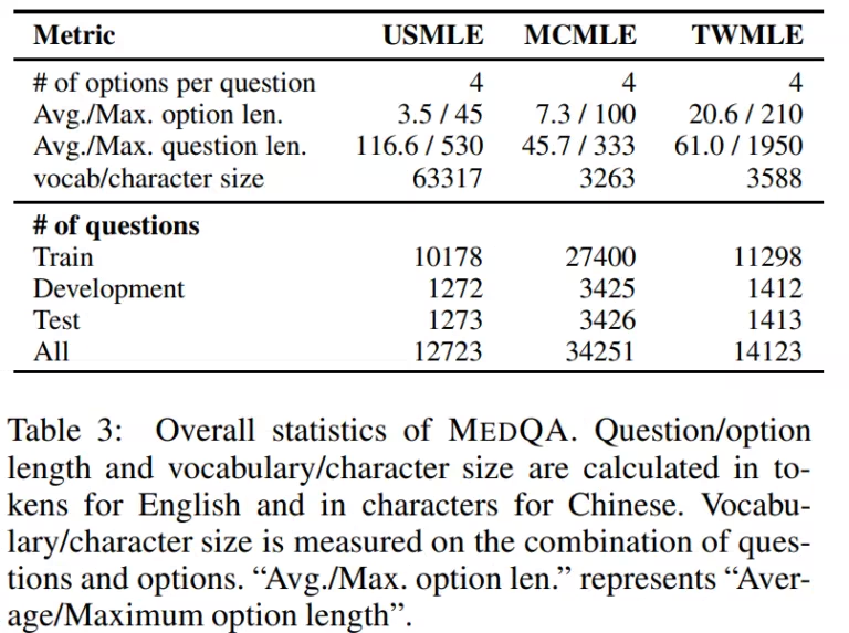 数据结构:配套发布大规模医学教科书语料库,为模型回答问题提供核心知识支撑;所有数据均划分训练集、开发集、测试集,划分比例科学,可直接用于模型全流程训练与验证。