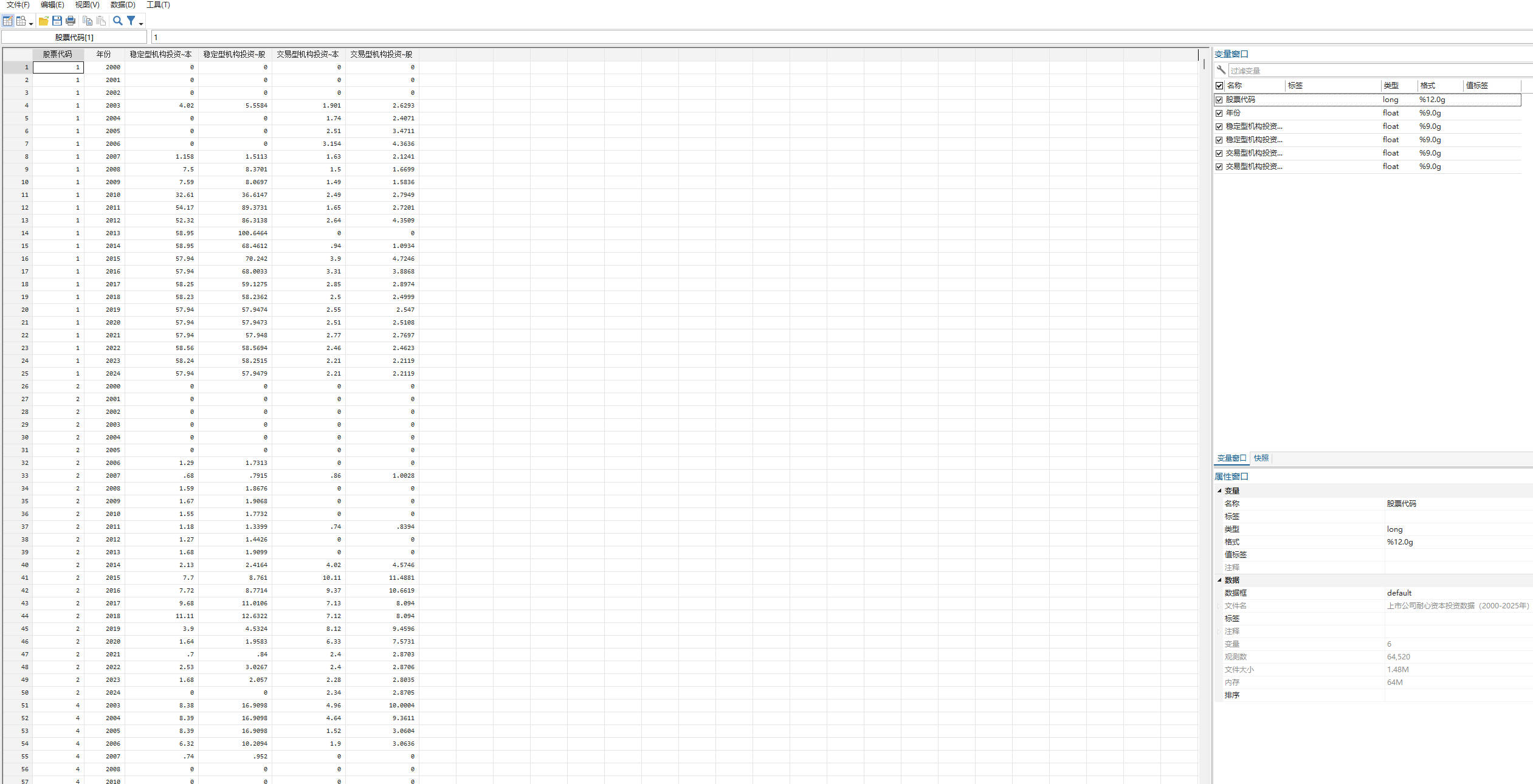 上市公司耐心资本投资数据(2000-2025年).dta —— 最终数据集(Stata格式)
