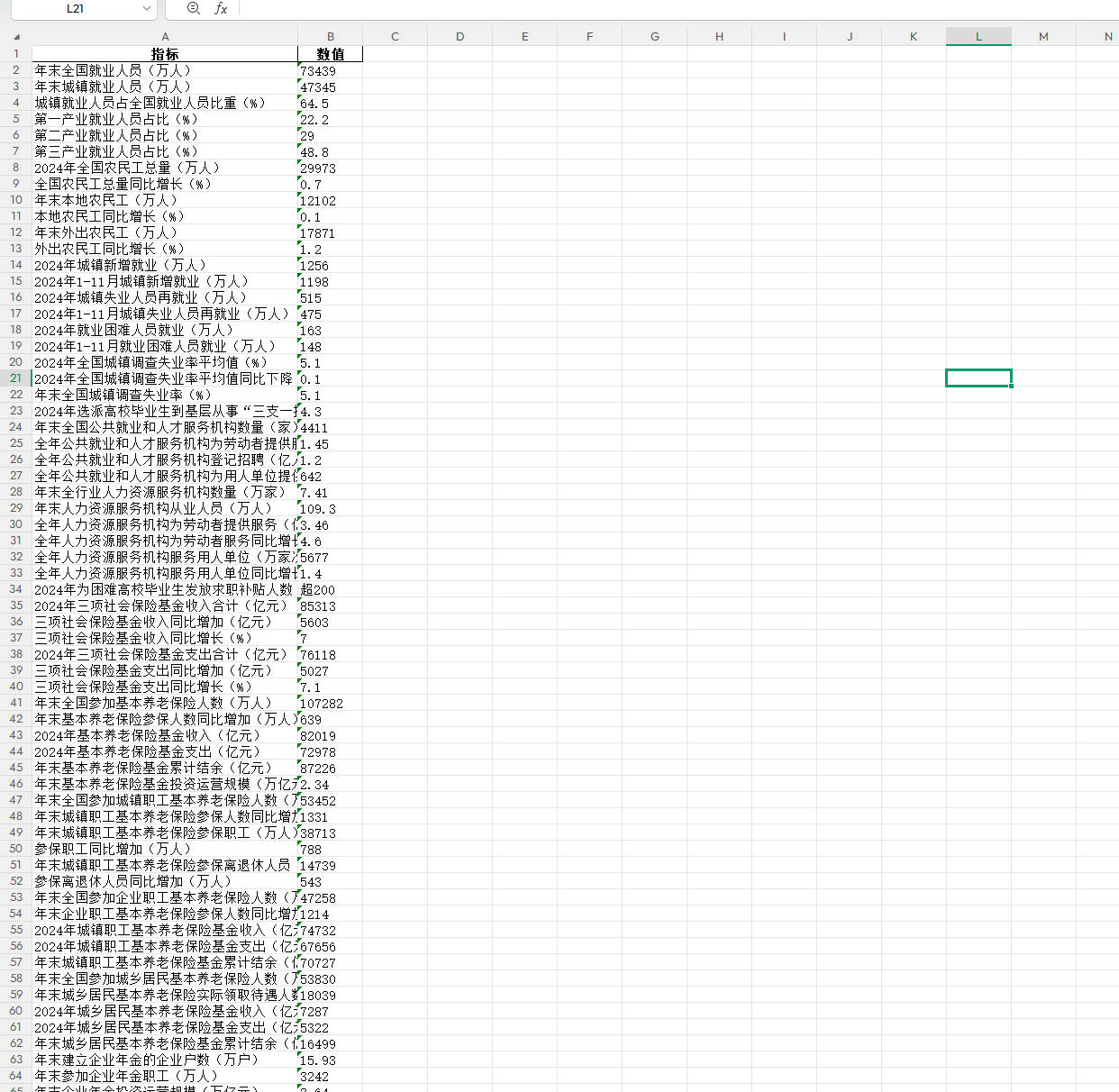 数据集采用"指标-年度"的二维结构,将分散于历年公报中的数百项关键统计指标进行提取、对齐与整合。主要涵盖劳动就业、社会保险、工资分配、劳动关系、劳动保障监察等。本数据集可用于经济学、社会学、公共管理等学科关于劳动力市场、社会保障、收入分配等领域的研究。