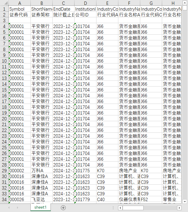 证券代码 证券简称 统计截止日期 公司ID 行业代码A 行业名称A 行业代码C 行业名称C 公司经营范围 公司所属省份编码 公司所属省份 公司所属城市编码 公司所属城市 主要产品名称 产品简称 产品分类 产品业务领域 产品描述