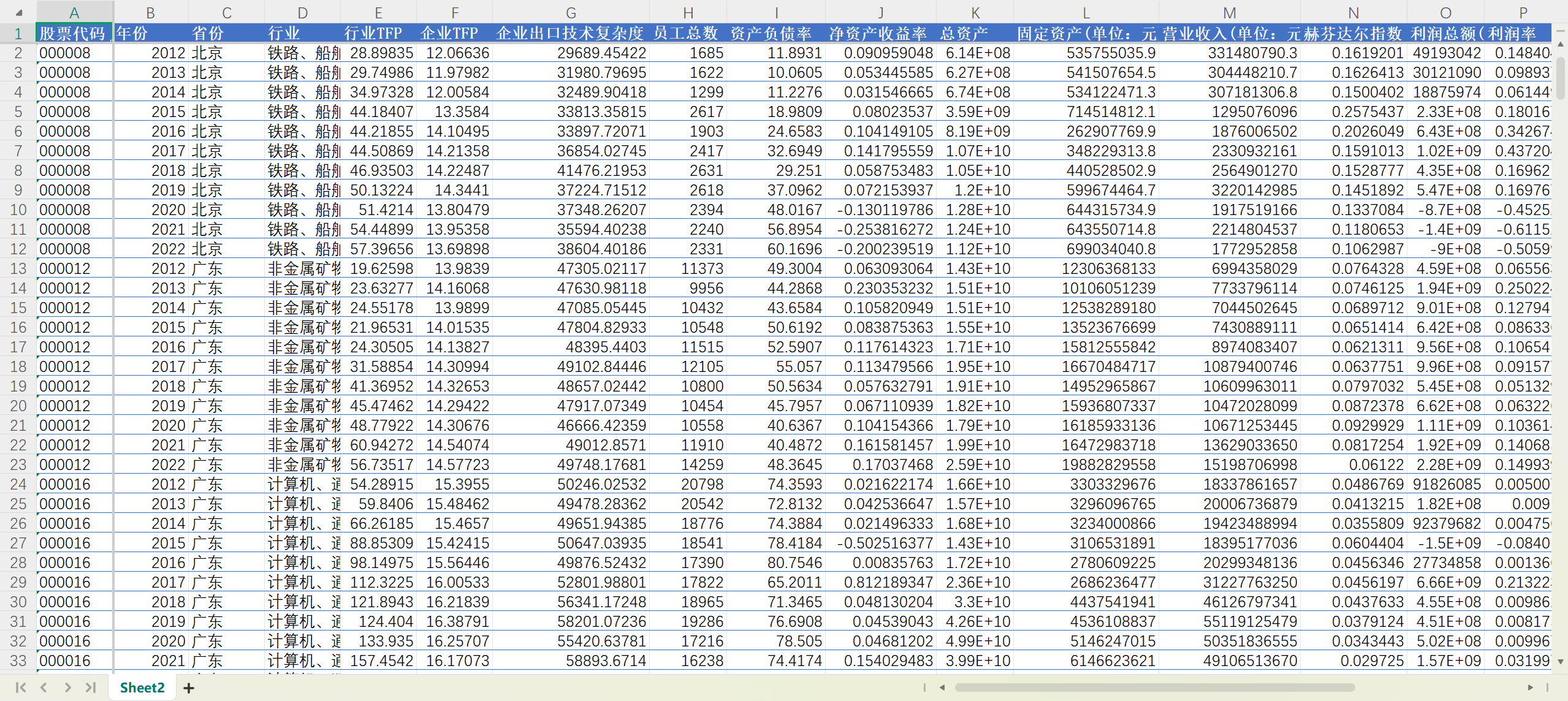 本分享数据首先利用国家出口数据以及世界人均 GDP 数据计算出行业出口技术复杂度,然后参考高翔和袁凯华(2020),利用企业全要素生产率和全要素生产率计算出上市企业的出口技术复杂度