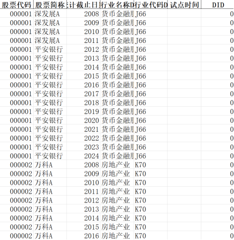 本数据参考贺佳等(2023)《税收优惠与企业脱虚向实——来自委托贷款的证据》的研究,构建固定资产加速折旧DID变量,具体方法如下:以2014年固定资产折旧政策的六大试点行业A股上市公司作为实验组,非试点行业的A股上市公司作为对照组,若该企业所属行业是该政策的试点行业,则在2014及以后取值为1,否则为0.