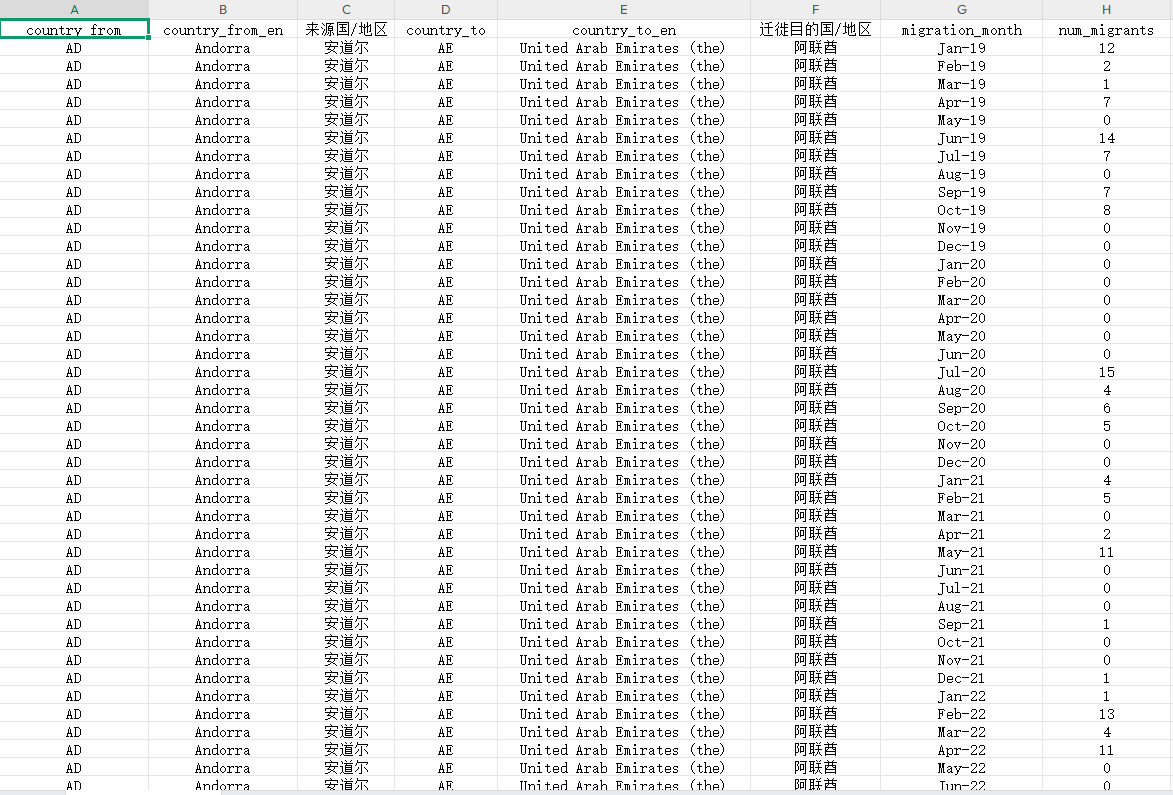 1、数据源名称:全球迁徙流动数据(2019-2022年)