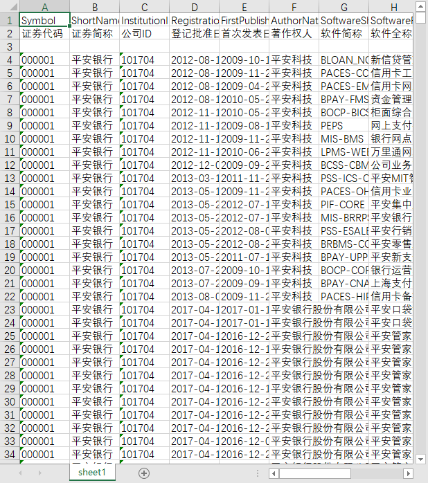 证券代码 证券简称 公司ID 登记批准日期 首次发表日期 著作权人 软件简称 软件全称 登记号 分类号 版本号 是否与