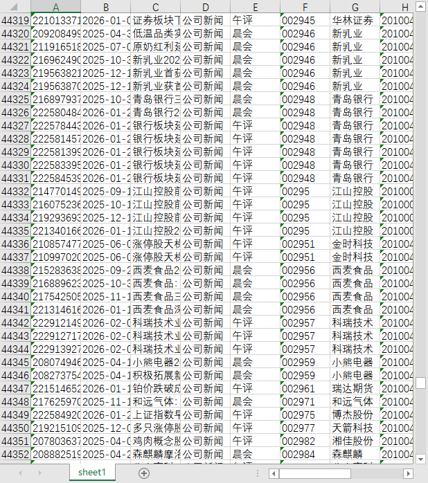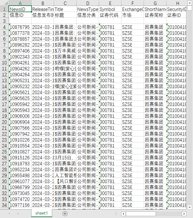 信息ID 信息发布时间 标题 信息分类 证券代码 市场 证券简称 证券ID 情绪 所属省份 所属省份代码 行业 概念