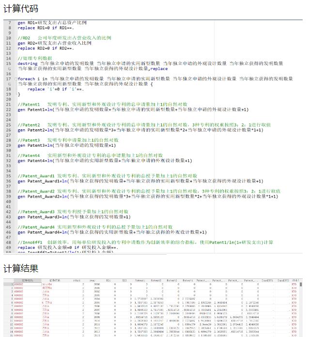 Patent Award2 发明专利、实用新型和外观设计专利的总授予量加上1的自然对数,3种专利的权重按照3:2:1进行取值