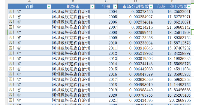 本分享数据为地级市市场分割指数、市场一体化指数、居民消费价格指数数据,包括原始数据、dofile、数据结果。年份为2004-2022年