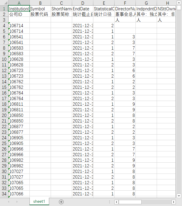 公司ID 股票代码 股票简称 统计截止日期 统计口径 董事会总人数 其中:独立董事人数 其中:非国有股东委派董事人数 其中:国有股东委派董事人数 监事会总人数 其中:非国有股东委派监事人数 其中:国有股东委派监事人数 高管人数 其中:非国有股东委派高管人数 其中:国有股东委派高管人数 是否两职合一