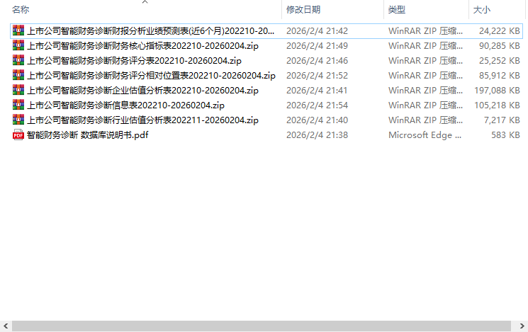 上市公司智能财务诊断财务核心指标表202210-20260204.zip