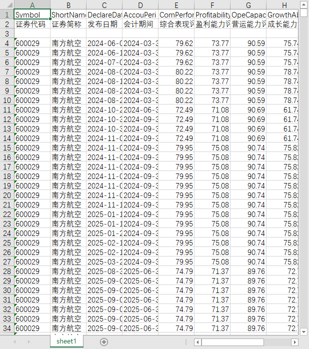 证券代码 证券简称 发布日期 会计期间 综合表现评分 盈利能力评分 营运能力评分 成长能力评分 偿债能力评分 盈利质量评分