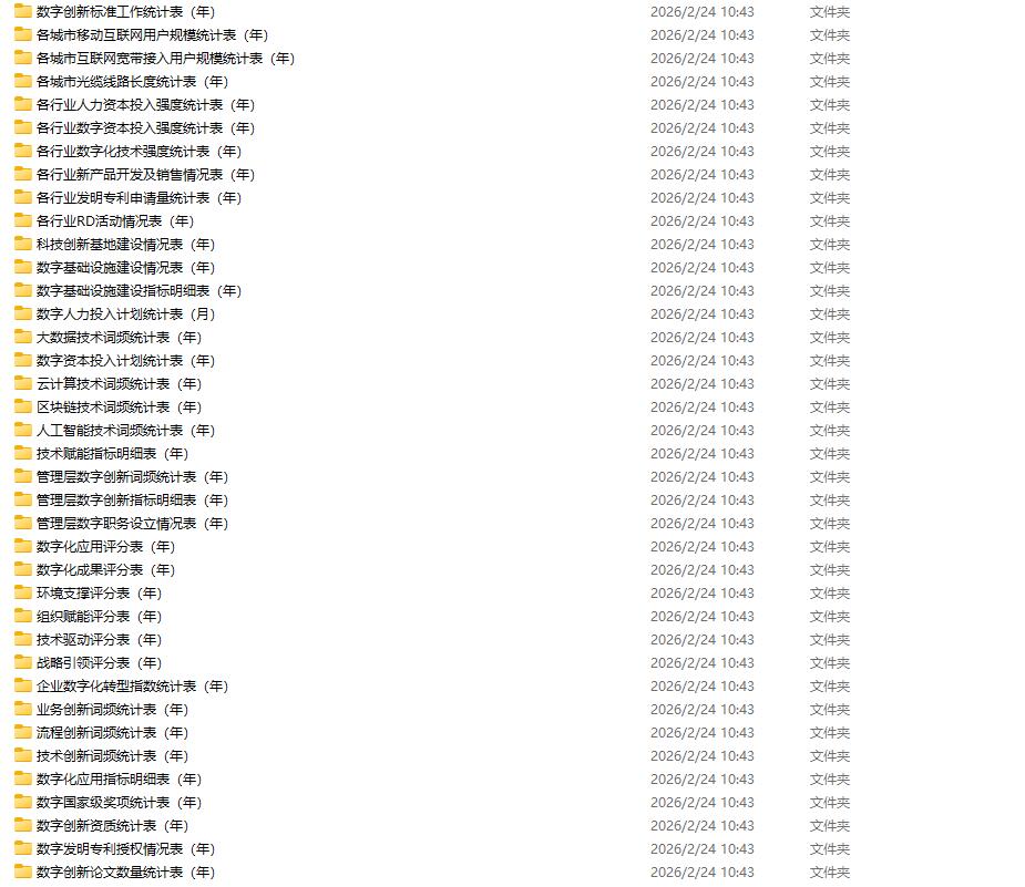 管理层数字职务设立情况表(年)、管理层数字创新词频统计表(年)、管理层数字创新指标明细表(年)、管理层数字创新导向指标表(年)