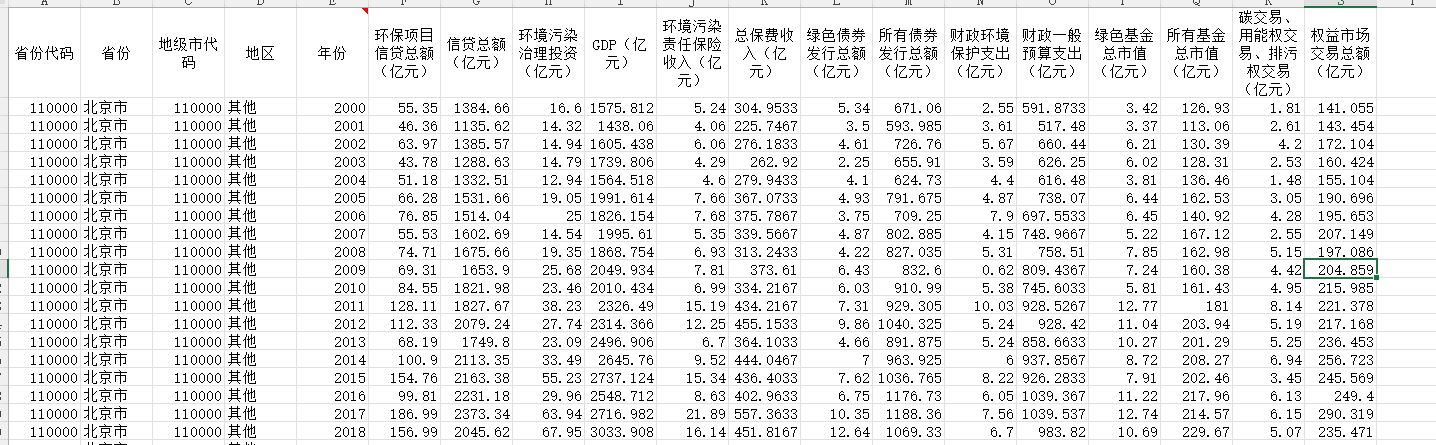 资源名称:中国各地级市绿色金融指数