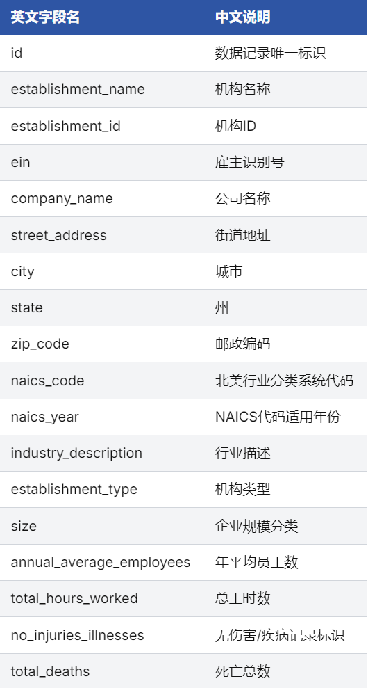 权威性与标准化:数据直接来源于美国联邦监管机构OSHA,采集流程严格遵循《职业安全与健康法案》规范,确保统计口径一致。