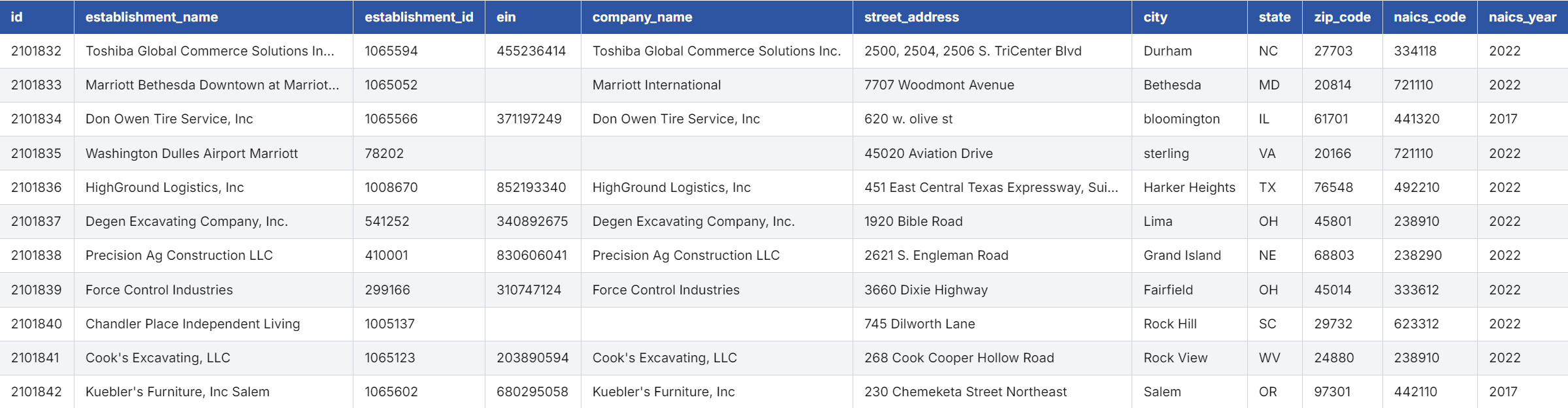 细粒度机构信息:涵盖企业名称、地址、员工规模等明细字段,支持精准的地理或行业分析。