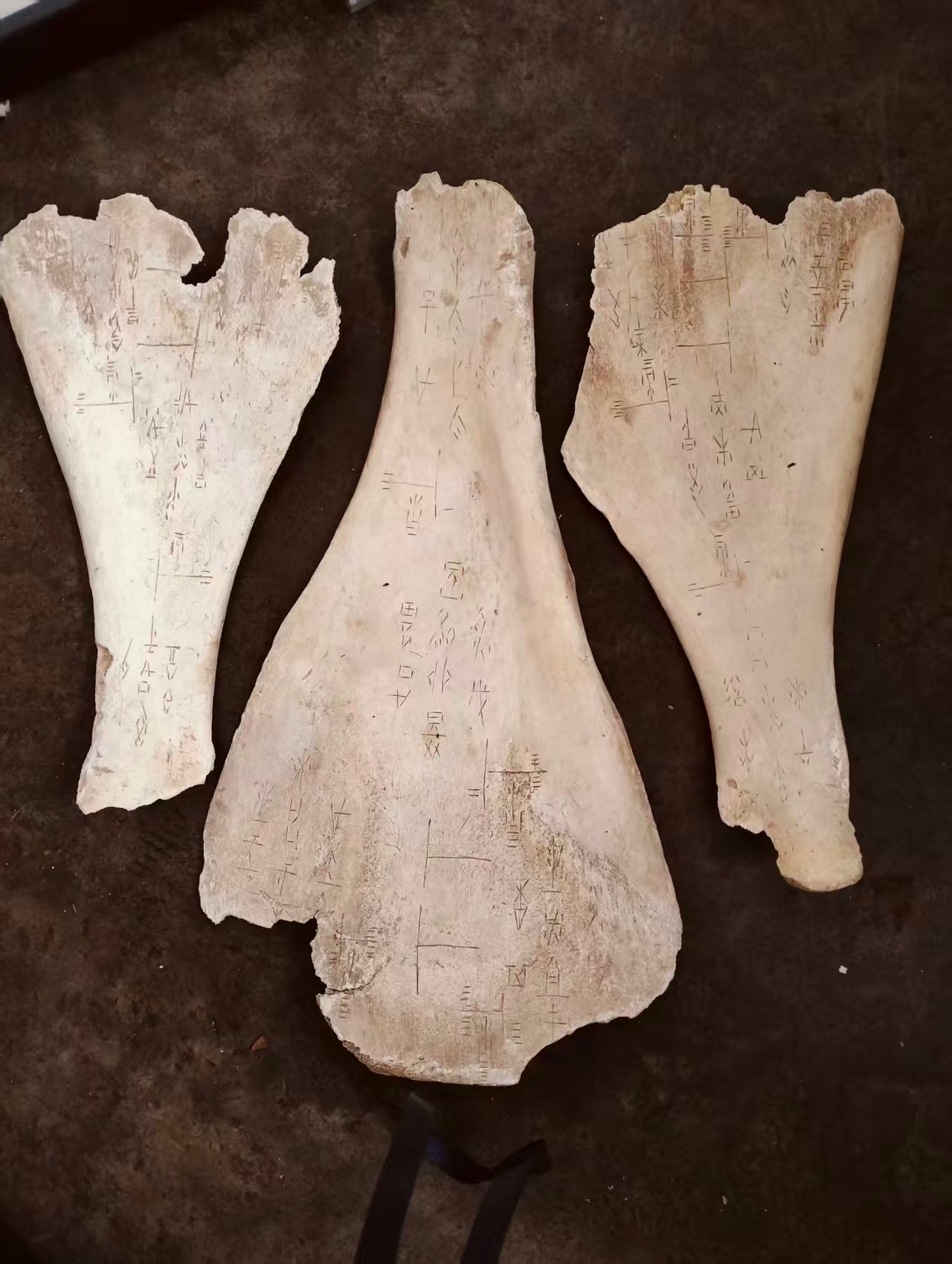 老乡拿出自己挖出的甲骨数千枚,我买下几枚相对完整的牛肩胛骨,其它都是碎片,有的只有几个字符,一些碎片送给朋友。