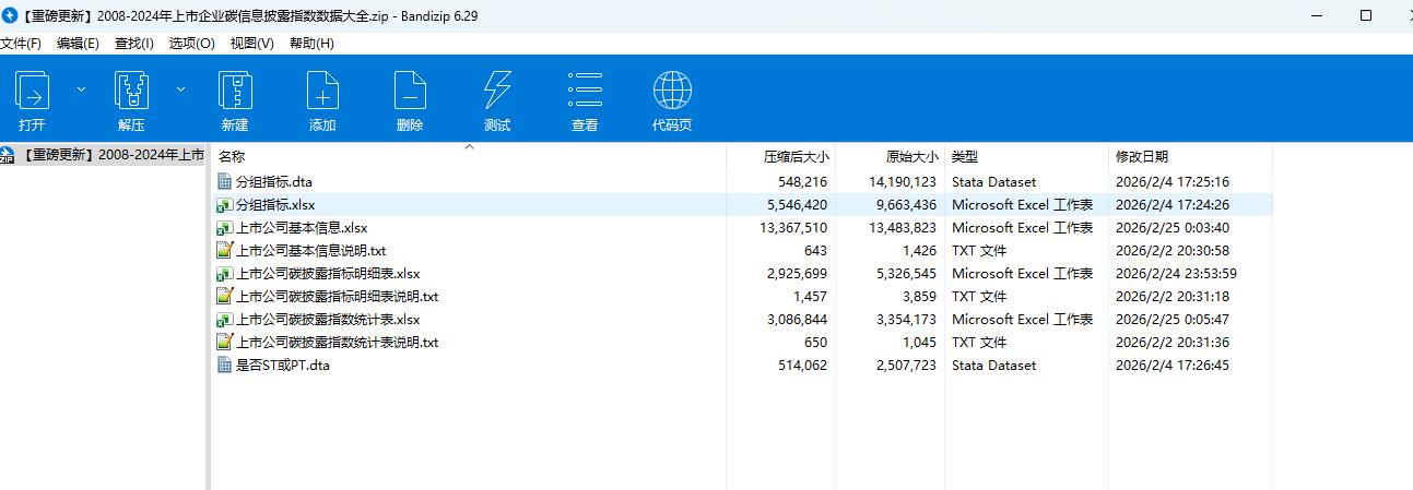 低碳经济已经成为经济领域的重要议题,绿色低碳发展被认为是企业可持续发展的“灵丹妙药”。企业是碳排放的主要来源,碳信息披露是监管部门和债权人了解企业碳排放现状、督促企业绿色低碳转型的重要途径。该数据库包含上市公司基本信息,上市公司碳披露指标明细,同时构造了上市公司碳披露指数,有利于衡量企业的碳披露水平,为学者进一步研究上市公司环境的相关问题提供数据支撑。