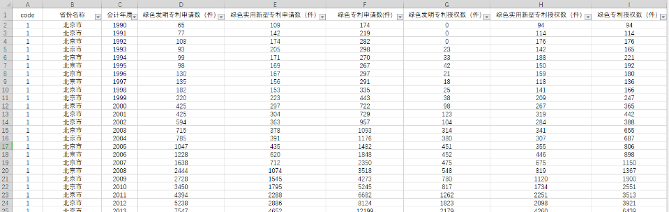 数据名称:各省、地级市-绿色专利申请和授权数据