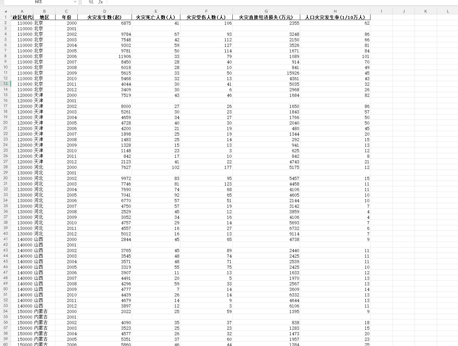 - 包含全国31个省份2000-2012年火灾事故相关数据