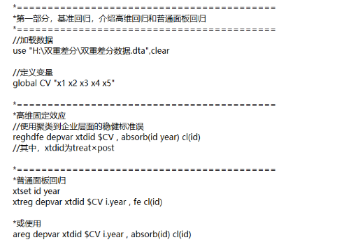 双重差分案例数据(dta格式)+程序代码(Stata)代码信息包含: