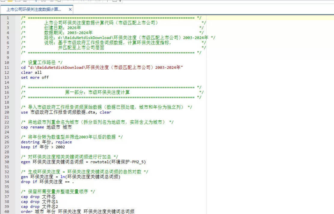 【数据】地级市环保关注度匹配上市公司数据2003-2024年