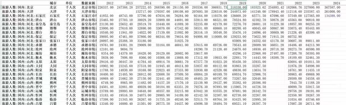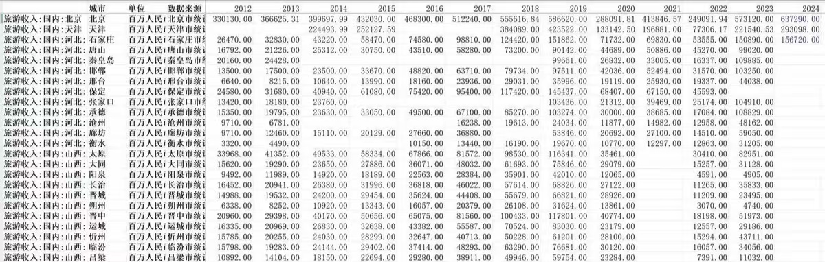 提醒:包括1999-2024年的297个地级市,来源权威database,数据来源写地级市统计局,非常可靠,数据质量超好,数据缺失是无更新的原因,缺失需要自行查询地级市的统计年鉴、地方志年鉴及国民经济和社会发展公报,或回归法、插值法补全即可。学术小白别问为啥缺失那么多,只要是做地级市旅游研究的人都明白这已经是目前能找到最新最全的数据了。