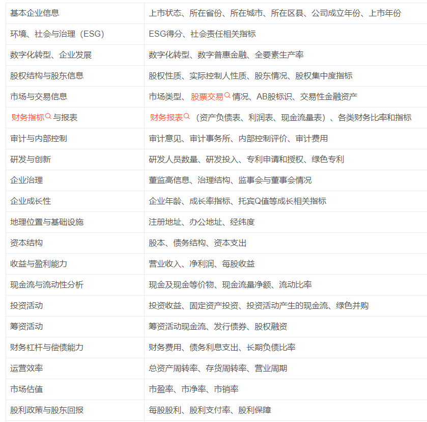 制造业企业是指从事原材料加工和制成品生产的公司,包括汽车、电子、机械、化工、食品加工等。它们通过将原材料转化为半成品或成品,推动经济增长和技术进步。制造业在促进就业、推动工业化进程和提高国际竞争力方面发挥着关键作用,是经济发展的重要支柱该数据包括上市公司制造业的基本信息、财务指标、环境、社会与治理、数字化转型、企业发展、全要素生产率等指标。