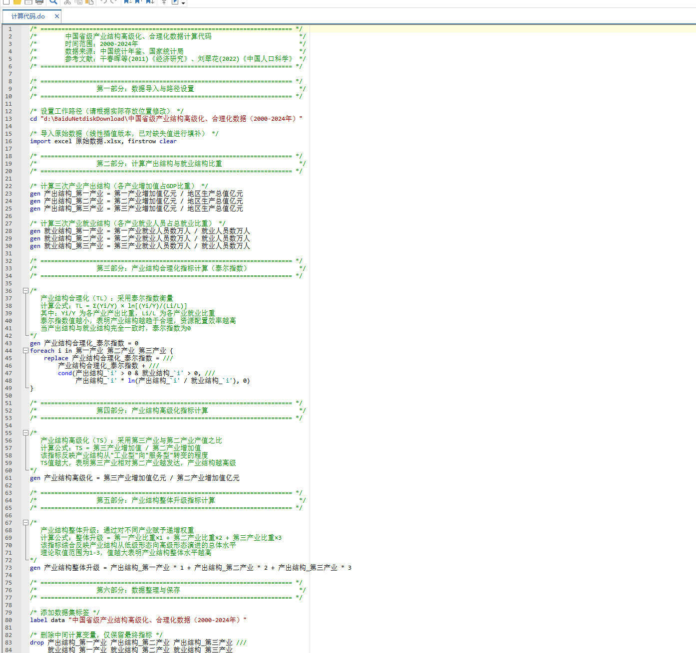 Stata计算代码,可复现全部结果