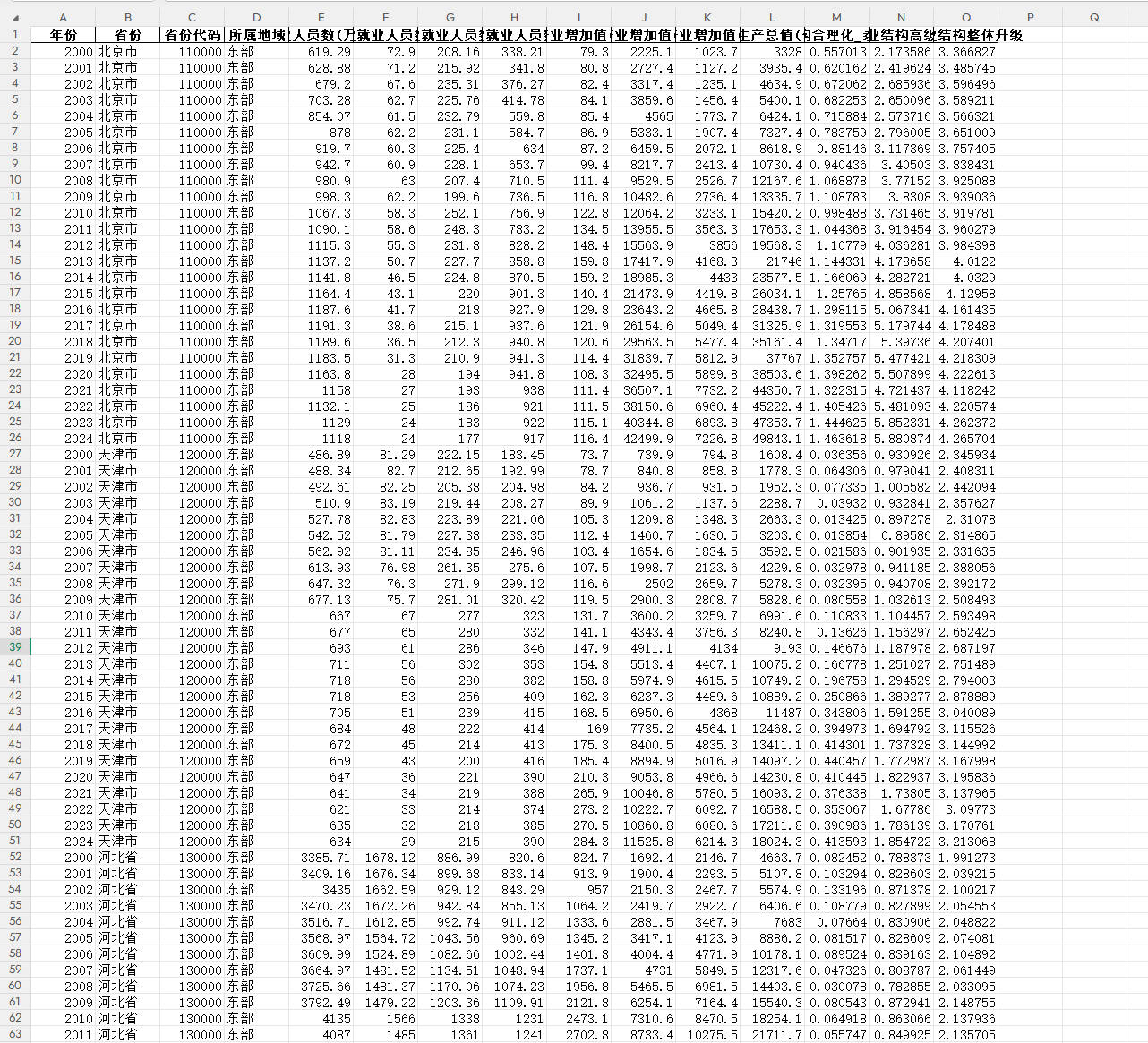 包含各省GDP、三次产业增加值、就业人员数等原始指标