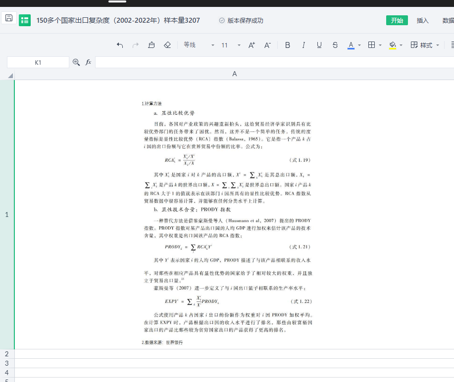 国家出口复杂度的计算通常结合产品分类体系(如SITC或HS编码)、出口额及出口国人均GDP数据,通过加权平均构建指标体系,内附计算方法。