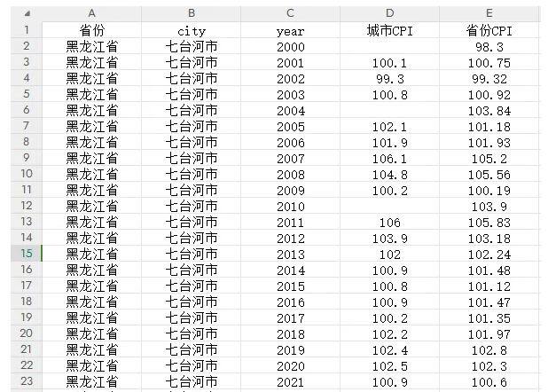 2000-2023年全国各省、地级市居民消费价格指数CPI