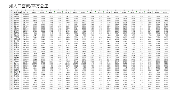 人口密度(2006-2022年/地级市/县级市/人每平方公里)