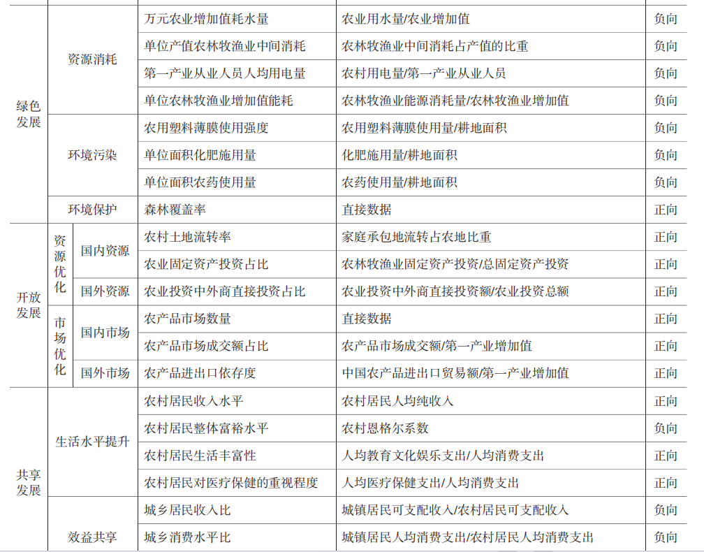 参考杨军鸽和王琴梅(2023)构建的指标体系并鉴于数据的可得性,选择以下指标对农业高质量发展指数进行测算。