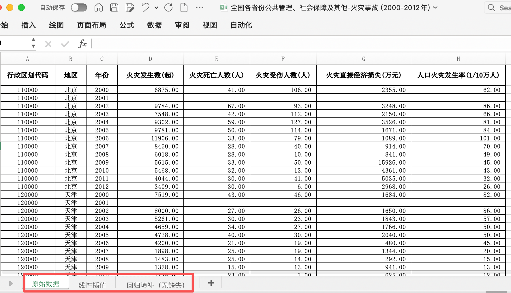 1.全国各地区火灾事故数据
